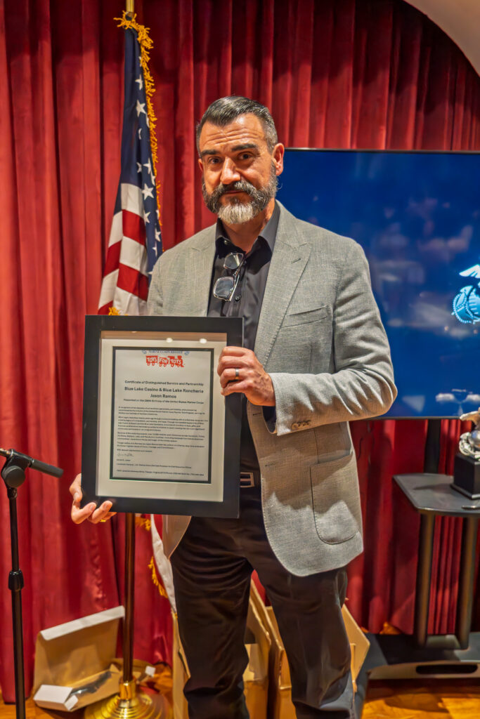 During this event, BLR Tribal Chairman Jason Ramos accepted a Certificate of Distinguished Service and Partnership from Toys for Tots, which recognized Blue Lake Casino & Hotel and BLR as the most significant community partnership for the local Toys for Tots chapter. Since the start of this partnership, Blue Lake Casino & Hotel and BLR have provided over $1.6 million in toys, gifts, and financial contributions. This contribution supports over 10,000 children each Christmas across Humboldt, Trinity, Del Norte, Siskiyou, Lake, and Mendocino counties – including hundreds from Native American communities in experiencing the joy and magic of the holiday season.